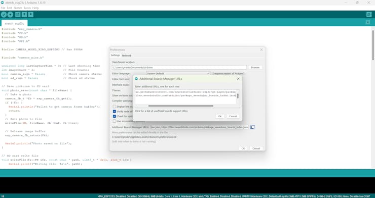 Open Arduino IDE and go to File > Preferences.In the āAdditional Board Manager URLsā field, add: https://raw.githubusercontent.com/espressif/arduino-esp32/gh-pages/package_esp32_index.json.Ā