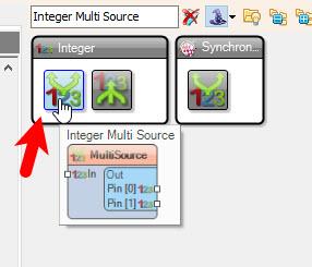 Add "Split Structure" componentDouble click on the "SplitStructure1" and in the Elements window Drag "Digital" to the Left sideClose the Elements WindowAdd "Digital Multi Source" componentAdd "Toggle(T) Flip-Flop" componentAdd "Pulse Generator" componentSelect "PulseGenerator1" and in the properties window select "Enabled", click on the pin Icon and select "Boolean SinkPin"Add "Up/Down Counter" componentSelect "UpDownCounter1" and in the properties window set "Initial Value" to 9, "Max" > "Roll Over" to False and "Max" > "Value" to 9, "Min" > "Roll Over" to False and "Min" > "Value" to 0Add "Integer Multi Source" componentSelect "IntegerMultiSource1" and in the properties window set "Output Pins" to 3