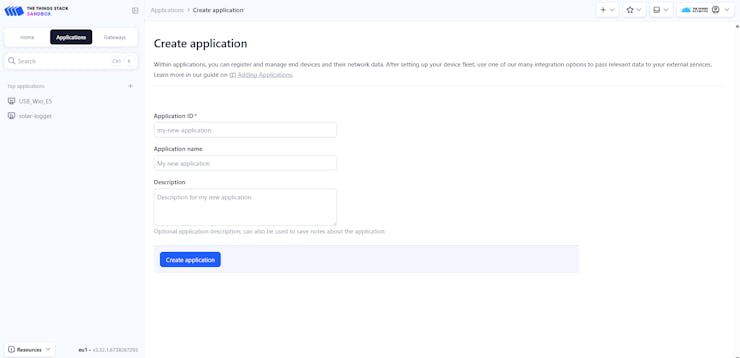 1. In the TTN console, click on Applications and then Create an Application.