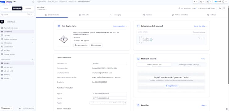 Youâve successfully integrated the Wio LoRa-E5 with The Things Network (TTN) using MicroPython and the Xiao ESP32-S3. You can now send data over LoRaWAN to the TTN, where it can be forwarded to cloud services, stored in databases, or visualized on a dashboard.