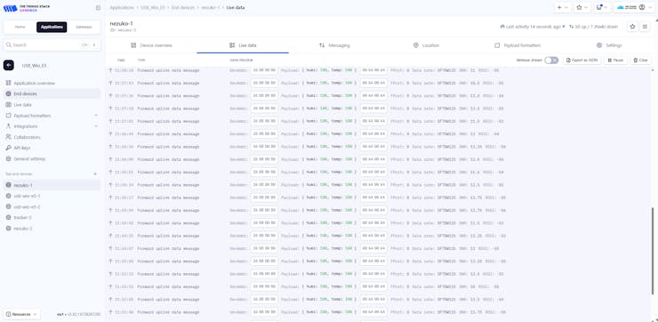 Finally, you can see your actual data in the TTN console.