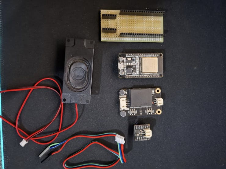 This project takes a different approach by creating a smart speaker that processes voice commands completely offline using DFRobot's Offline Language Learning Voice Recognition Sensor. The ESP32 microcontroller works double duty - handling Bluetooth audio streaming while managing voice commands, while the MAX98357A I2S amplifier ensures high-quality sound output.