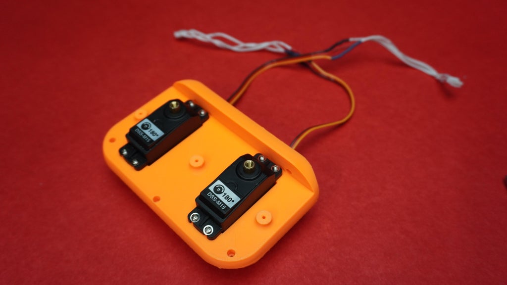 2 Servo motors (connected to one common connector), 2 Servo motor housings (left and right), 2 Servo motor covers (left and right), M2 screws (from the servo pack), Quick glue