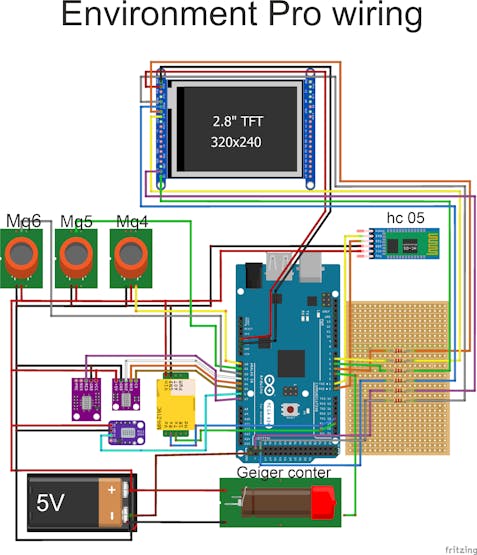 Arduino Mega 2560 is famous as most powerful board in Arduino line. It has 16Mhz core, 4 UARTs and significant number of analog and digital pins promising a wide range of possibilities. The sensor market for the average person is quite limited. In general, only gas sensors based on semiconductor properties are readily available for individual purchase. While their accuracy and usage range may not be as high as those used in professional settings, the price is generally quite affordable. Was decided to add TFT monitor with 2.8'' and 320x240 resolution to monitor measurements separately from a PC.