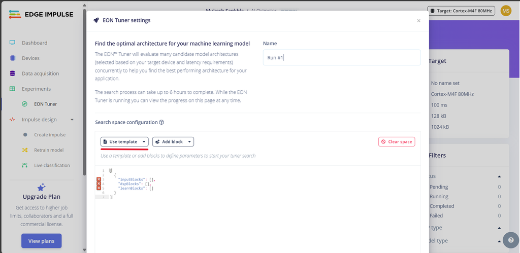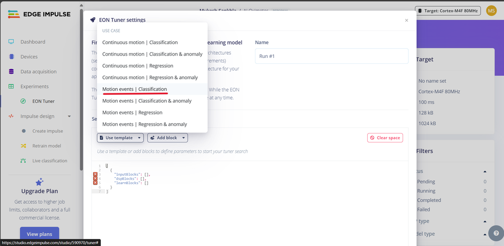 Navigate to the EON Tuner panel within your Edge Impulse project.