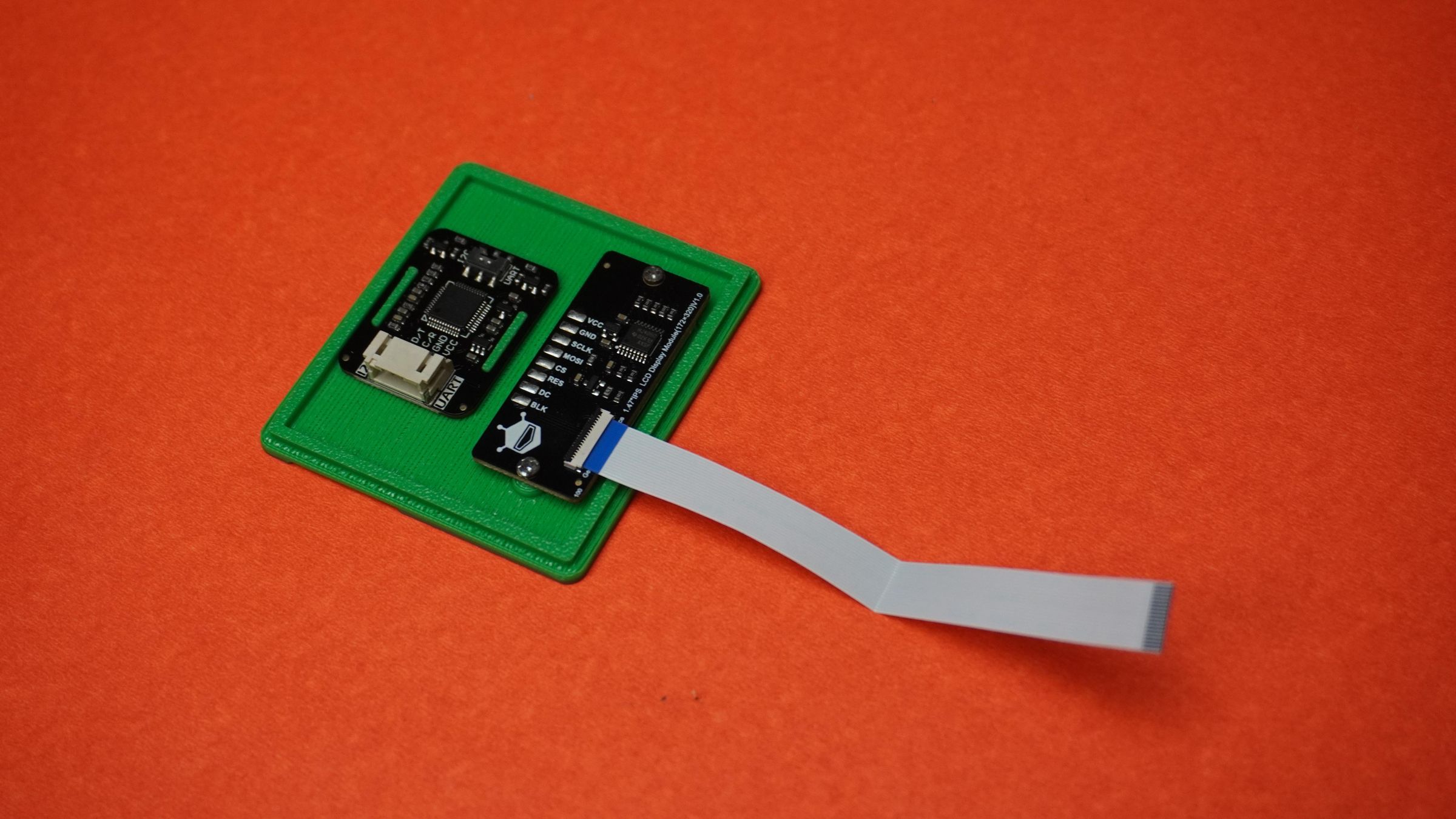 Then, I took the display module and, using two M2 screws, mounted it to the cover in its designed position. Make sure to keep the orientation in mind during assembly.