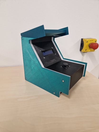 We completely designed the console ourselves, drawing inspiration from retro arcade designs. The 3D modeling was done using the free version of Fusion 360. You are welcome to use our print files, but please note that we forgot to account for tolerances in the 3D print, so some parts may fit very tightly. Additionally, the model is designed for our exact components; if yours differ slightly, the dimensions may not match. We printed the casing with two colors of PLA and used transparent Nylon for the LED holders. The 3D printing would take about 50 hours.