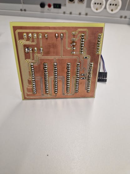 In our current design, we soldered a few wires directly onto the circuit board, which we would replace with pin headers in a future version. Additionally, the connections for the joystick and display were twisted, which is not optimal. If you do not have the equipment to create a single-layer circuit board, you could also build the entire project using a hole grid board.