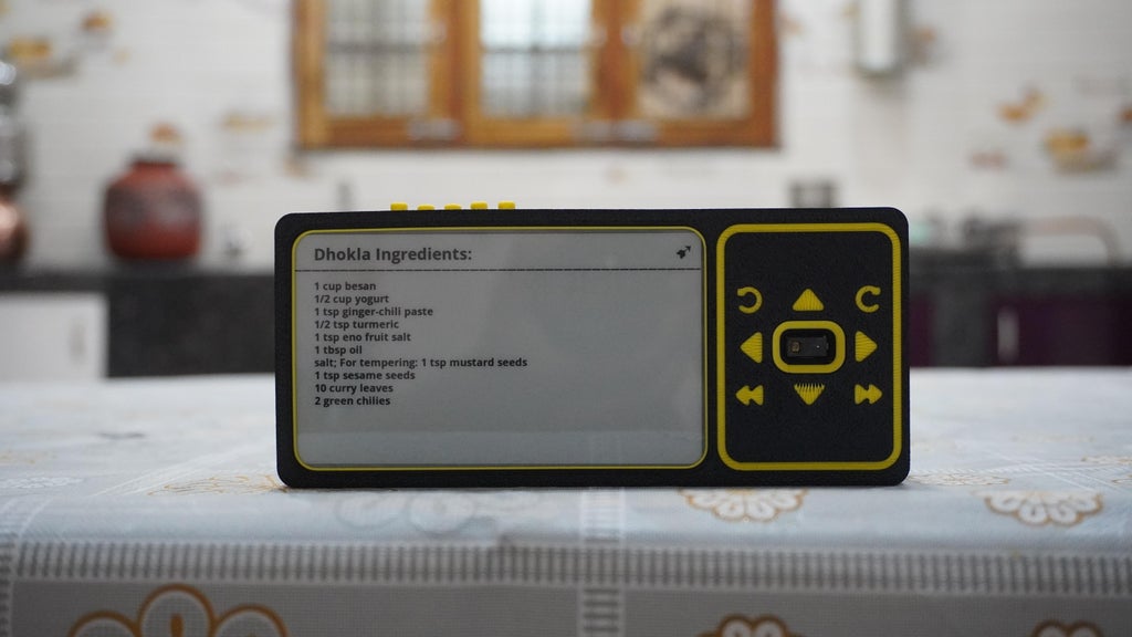 Built around a 4.7" E-Ink display, a gesture sensor, and a rechargeable 18650 battery, this sleek, modern device operates with simple hand gestures. No messy touchscreens, no cluttered recipe books, just wave right for a new meal idea, swipe up to reveal step-by-step instructions, and swipe down to return. Plus, with its custom 3D-printed case and magnetic mount, it blends seamlessly into any kitchen setup.
