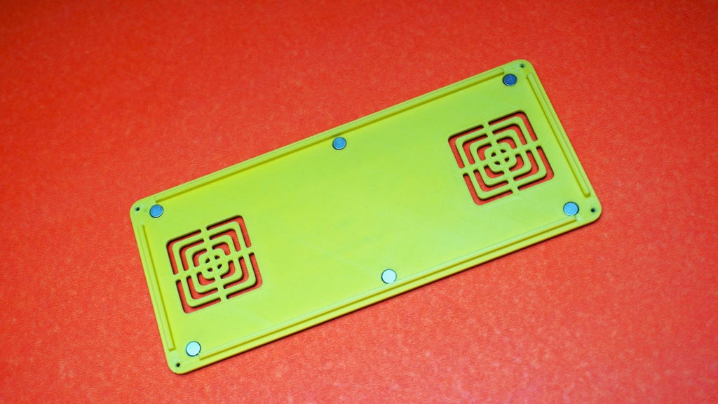 Take the 3D-printed cover and six 5mm magnets, then press the magnets into the designated holes.