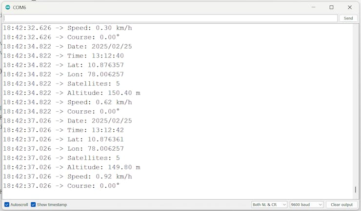 One practical application of this project is real-time location tracking. By integrating this setup into a portable device, you can monitor and log your location data as you move. This can be particularly useful for outdoor activities such as hiking, biking, or geocaching. The real-time display provides immediate feedback on your position, speed, and altitude, enhancing your navigation experience.