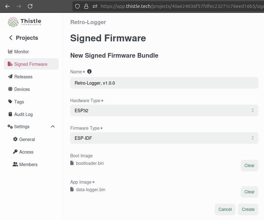 2. Sign Firmware Using Thistle Control Center