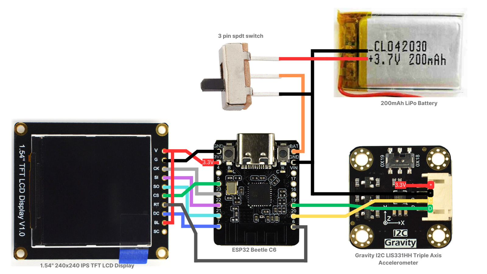 (Regarding the software: All GIF based libraries are native to the Arduino IDE and can be found via the library manager, whereas the accelerometer and filter libraries can be found from the GitHubās in the comments of the acceleration step :) )