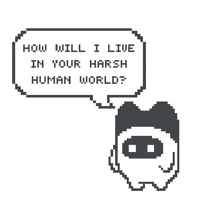 Minimal, deadpan, and just the right amount of cute ā think Baymax meets pixel art.